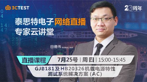 直播時間:7月25號(周四) 15:00-15:45 課程摘要:針對GJB181及HB20326.7/8標準中交流供電測試要求,介紹系統方案包括測試設備、測試方法及測試軟件。歡迎大家參與直播互動~