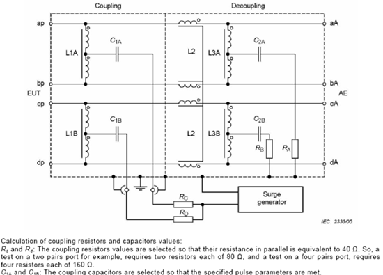 Annex H 對額定電流大于200A的供電線路施加浪涌的耦合去耦方法