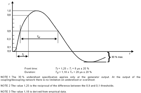 1對線的2根線短接:峰值電流,波前時間,持續時間 |