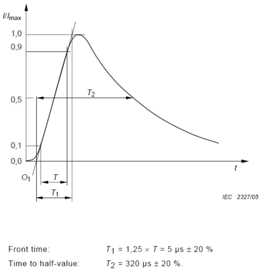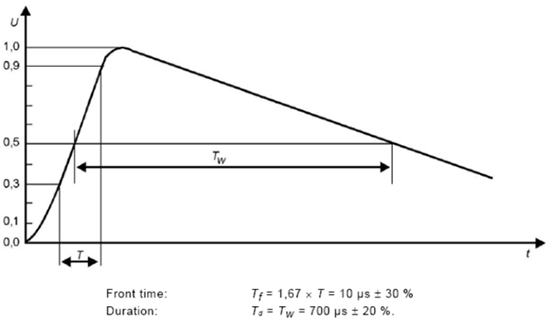 電壓 波前時間Tf Tf=1.67×Tr ±30% |