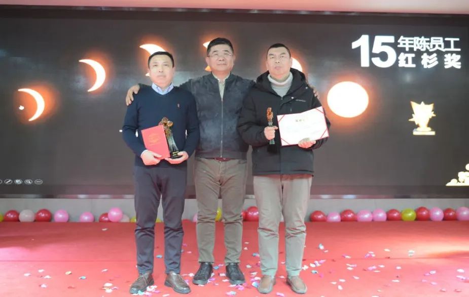 十五年歷練于心,成就卓越;十五年全力以赴,百煉成鋼;十五年來,他們依舊初心如磐;公司特頒發“十五年陳-紅杉獎”。