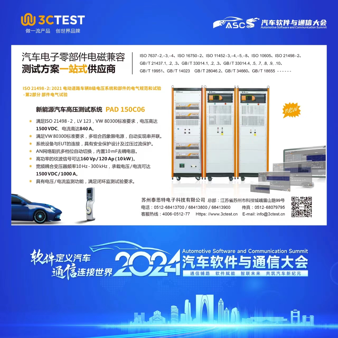 本次大會,泰思特電子展出產(chǎn)品:新能源汽車高壓測試系統(tǒng) PAD 150C06、汽車EMC檢測設(shè)備系列。