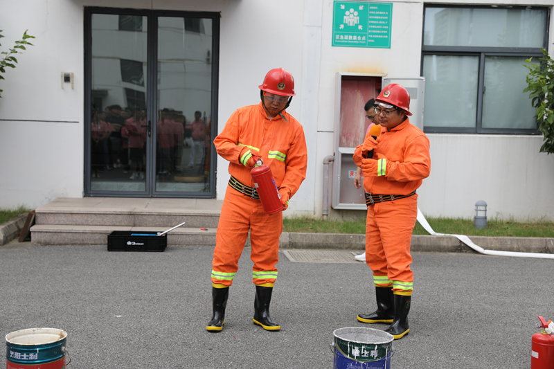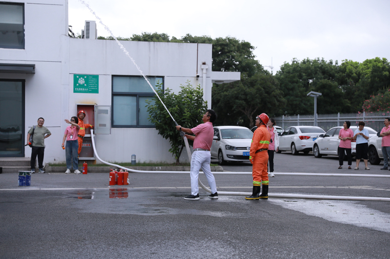 接著,我司安全員、安全生產標準化老師詳細講解了滅火器及消防水帶的使用方法和注意事項,并指導員工們親自上手使用滅火器、消防水帶滅火。