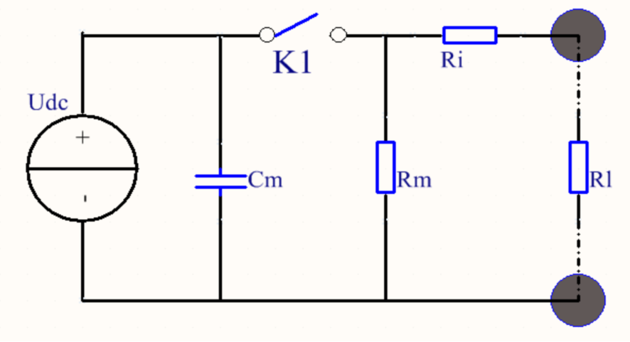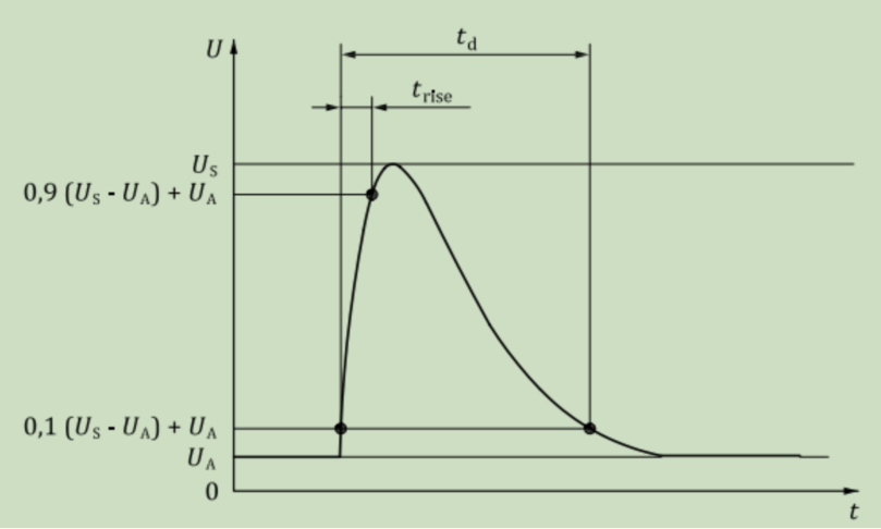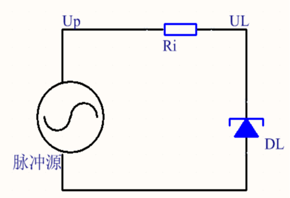 根據(jù)標(biāo)準(zhǔn),波形為雙指數(shù)波。由于Tr << Td,脈沖形成回路簡(jiǎn)化為上圖。