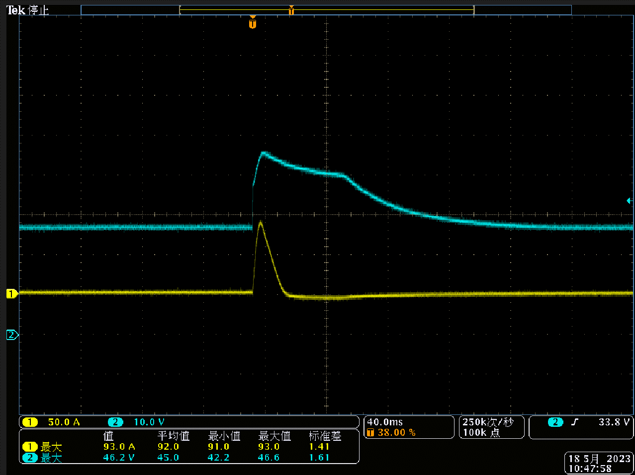 另一臺(tái)發(fā)生器電壓讀值:38V;電流讀值:4.8A。