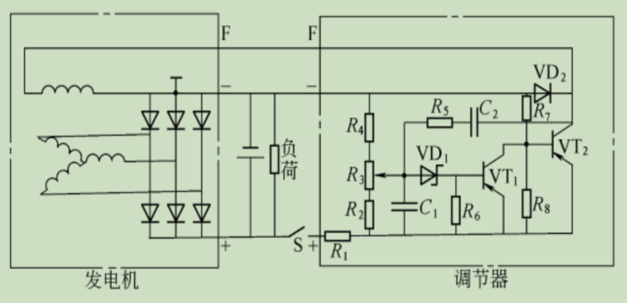 交流發(fā)電機(jī)限幅是測(cè)量輸出端的電壓值,當(dāng)電壓過(guò)高,則切斷勵(lì)磁電路。