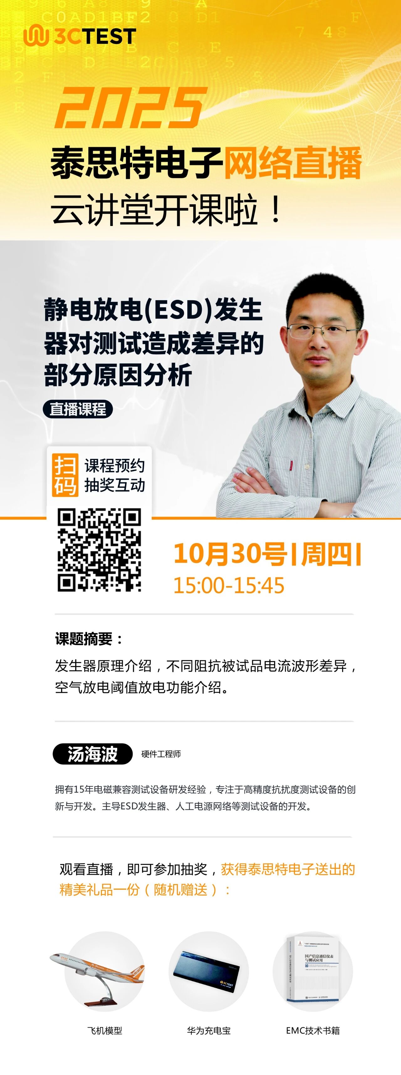 【直播預告】靜電放電(ESD)發生器對測試造成差異的部分原因分析