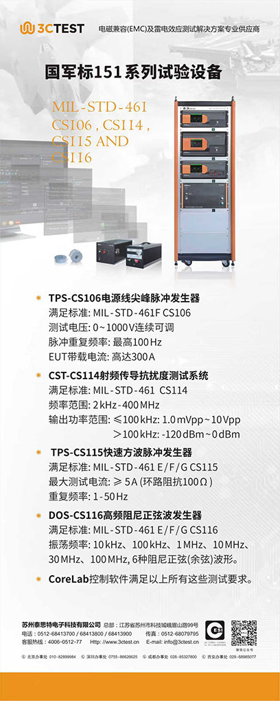 會議期間,我們將在展區系統展示 3CTEST 在電磁兼容、電磁環境效應及雷電防護等領域的系列化測試儀器與系統解決方案,歡迎各位專家、同仁蒞臨3CTEST展臺交流指導,親身體驗我們的產品與解決方案!