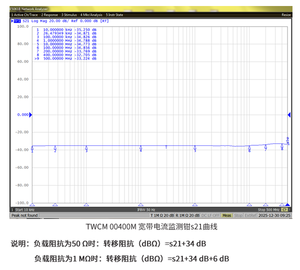 TWCM 00400M 寬帶電流監測鉗用于10 kHz ~ 400 MHz交變電流及時域脈沖電流的測量需要。通過電磁耦合方式將交變信號電流或脈沖信號電流以電壓方式傳遞給記錄設備,具有波形無畸變、與電流載體物理隔離等特點。滿足各類標準對400 MHz及以下交變信號、上升時間大于0.9 ns瞬態脈沖信號的測量需要。廣泛應用于電磁兼容傳導發射及傳導敏感度(抗擾度)測試。