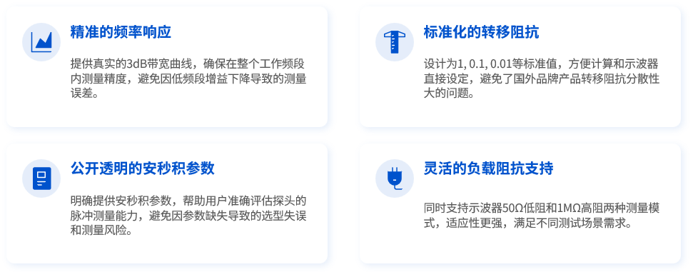監測探頭:核心指標是測量線性度、波形保真度、寬頻帶精度,追求對真實電流的無失真還原,滿足計量 / 測試的溯源要求