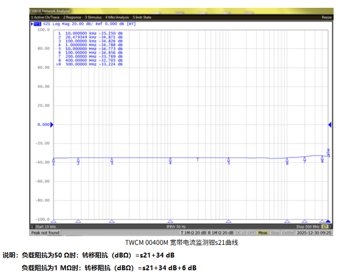 監測探頭轉移阻抗實測曲線
