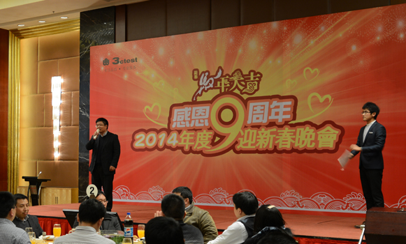 2014年1月21日蘇州泰思特“感恩9周年,2014迎新春晚會”為主題的年會在蘇州萬豪大酒店拉開序幕!全體員工齊聚一堂,歡聲共慶新春節(jié),舉酒同歌幸福年。