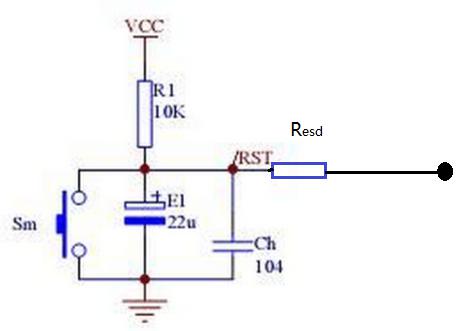 ESD設計中用到的限制ESD電流的電阻,常見于RESET電路中,這是EMC設計應用。