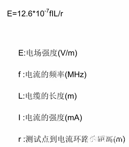 PCB 上有許多信號環路,由中有差模電流環也有共模電流環,計算其輻射強度時,可等效為環天線,輻射強度由下式計算: