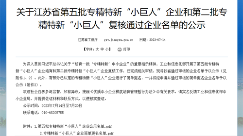 近日,江蘇省工信廳公示了第五批國家級專精特新“小巨人”企業名單,泰思特電子成功入選。