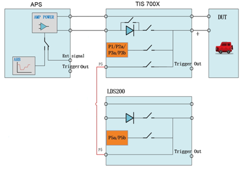 TIS 瞬變脈沖干擾模擬器系列集成了ISO 7637-2標準要求的試驗脈沖P1/1b/2a/3a/3b/6電源線試驗以及ISO 7637-3標準要求的信號線和數據線試驗。TIS 系列模擬器不僅能夠滿足全球眾多汽車制造商的標準要求,還能根據用戶需要定制各種波形模擬發生器。其具有更高的脈沖電壓、頻率,可以自由設定,用于尋找被測品的敏感點,遠超出標準的要求。內置耦合網絡的輸入與LDS 200系列、APS系列的輸出相連,可作為統一的中央輸出端口(被試設備)。不同的模擬器均由數據總線互聯、并通過以太網連接至遠程PC端組成一套完整的測試系統。