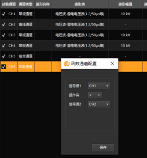 n 試驗(yàn)支持組合通道,可對(duì)任意通道波形進(jìn)行組合拼接。