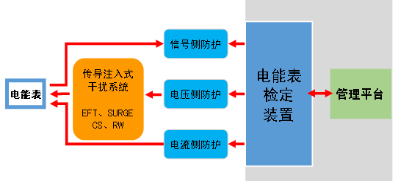 SND-10NF系列電能表EMS測(cè)試系統(tǒng)專用去耦網(wǎng)絡(luò)在進(jìn)行快速瞬變脈沖群抗擾度(EFT)、射頻場(chǎng)感應(yīng)的傳導(dǎo)騷擾抗擾度(CS)、浪涌抗擾度(SURGE)、衰減振蕩波抗擾度(RW)和無線電干擾抑制,試驗(yàn)時(shí)電能表被要求在工作狀態(tài)下(加額定電壓),在無電流時(shí),要求計(jì)度器和電能脈沖輸出不應(yīng)產(chǎn)生大于規(guī)定要求的信號(hào)量,在有電流狀態(tài)下,誤差的改變要求在標(biāo)準(zhǔn)規(guī)定的范圍內(nèi)。這就要求檢定系統(tǒng)裝置能夠在EMC試驗(yàn)狀態(tài)下除了能穩(wěn)定輸出電壓、電流信號(hào),并且能夠接收脈沖信號(hào)及計(jì)算誤差外,還要能正常的工作,比如數(shù)據(jù)處理、數(shù)據(jù)傳輸?shù)取_@對(duì)高精度的檢定系統(tǒng)要求嚴(yán)酷很多,傳統(tǒng)的檢定系統(tǒng)無法完成這一在線測(cè)試需求。SND-10NF系列是一整套的電能表EMS抗擾度測(cè)試系統(tǒng),以實(shí)現(xiàn)電能表各類干擾施加、電能表檢定、電能表檢定管理和檢定系統(tǒng)防護(hù)四大功能。