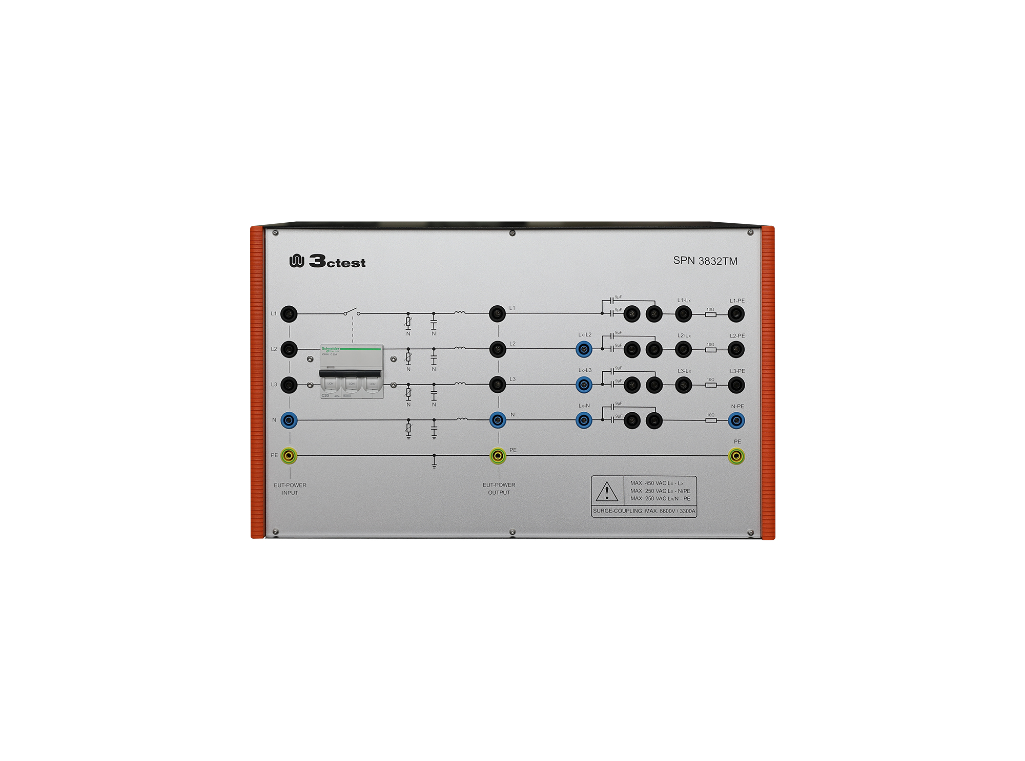 > EUT最大電壓AC 450V(Lx-Lx)、AC 250V(Lx-N/PE)、DC 220V 16A;